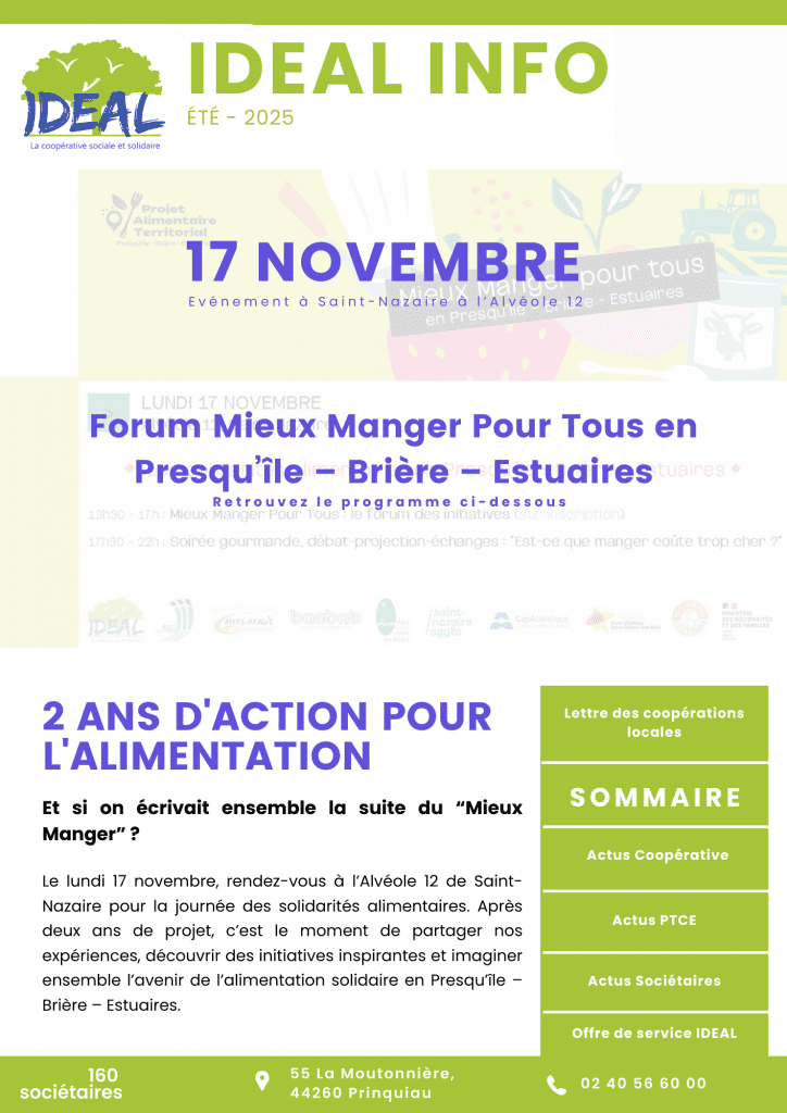 La newsletter de l’Hiver 2025 est arrivée ! Découvrez les actu du PTCE NOLA, de la Coop IDEAL et ses coopérateurs en Loire-Atlantique. Newsletter de l’hiver […]